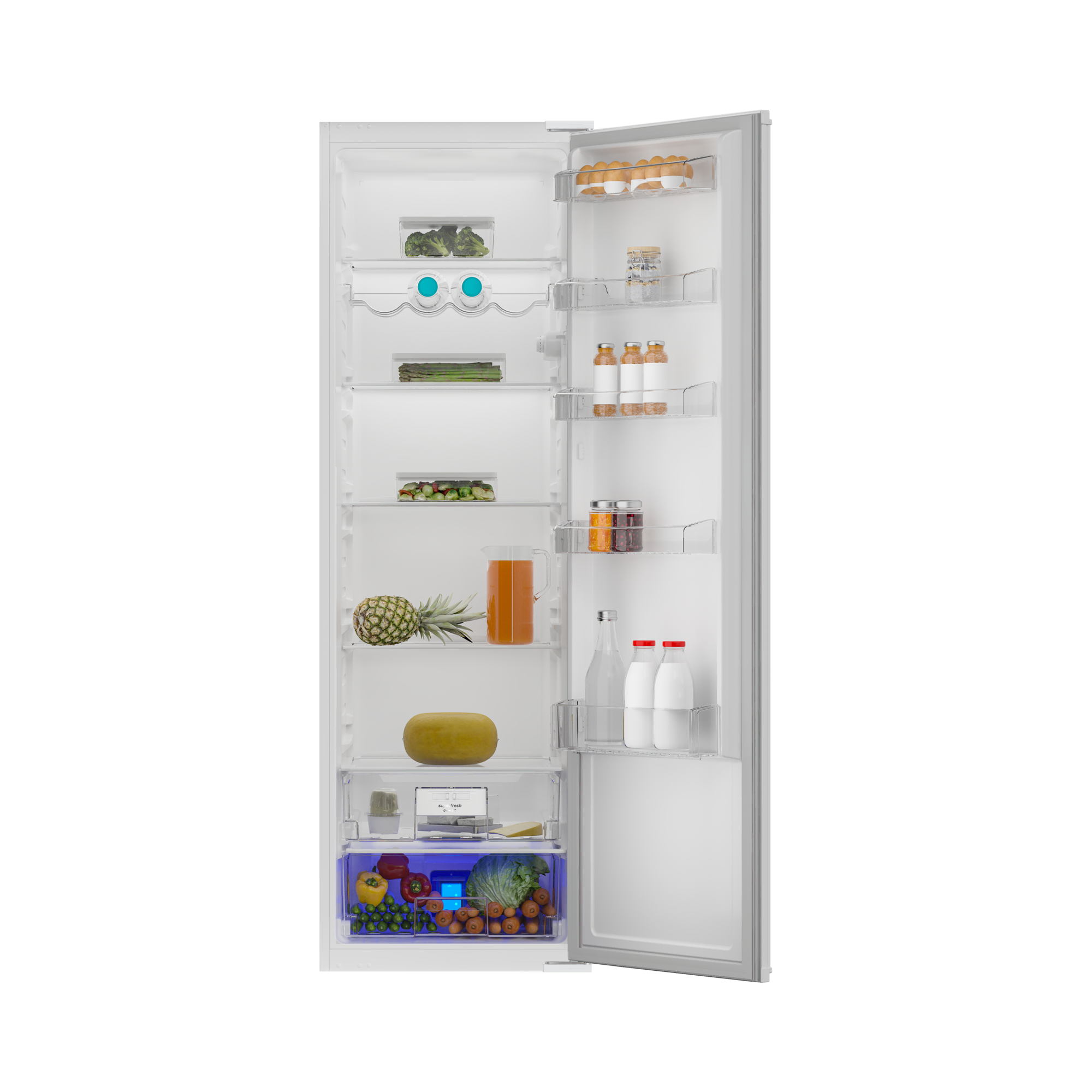 Mavi Işık teknolojisi meyve ve sebzeleri ideal dalga boyuna sahip bir ışıkla aydınlatır ve doğadaymış gibi fotosentez yapmalarını sağlar. Tat ve aromaları korunan gıdalarınız daha uzun süre taze kalır ve C vitaminleri kaybolmaz.