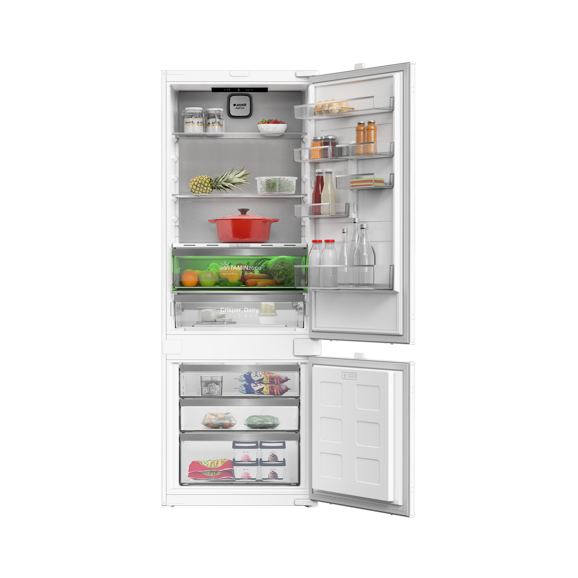 Arçelik VitaminZone teknolojisi doğal gün ışığı döngüsünü simüle eder. Böylece buzdolabınızdaki meyve ve sebzelerin taze ve canlı görünümünün yanı sıra vitamin değerleri de daha uzun süre korunur.