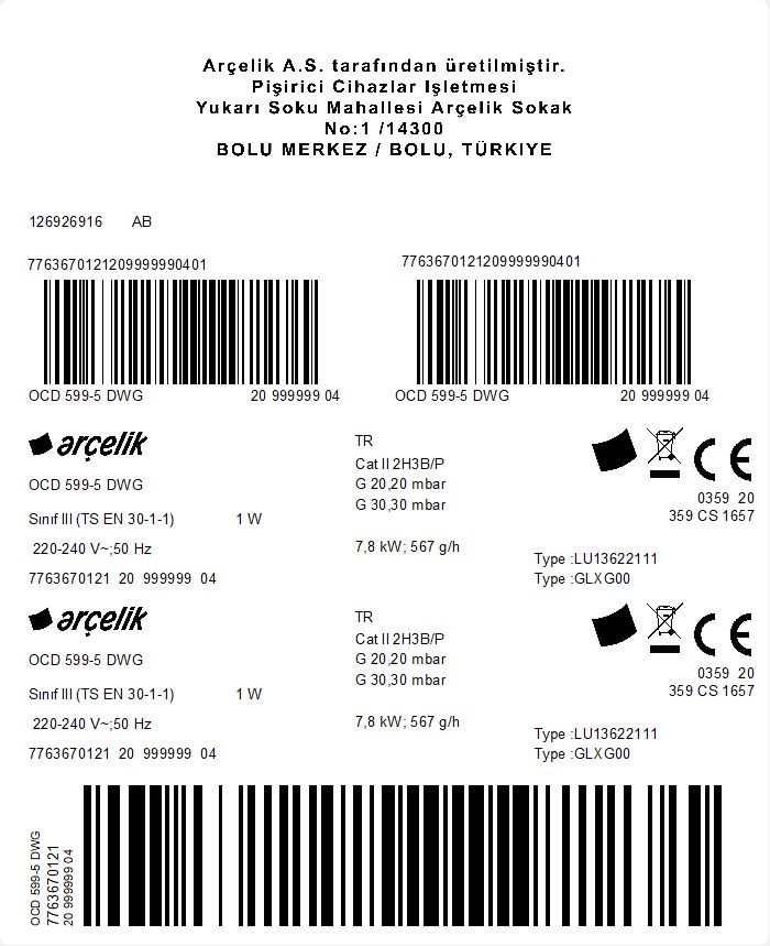 • OCD 599-5 DWG Ankastre Ocak