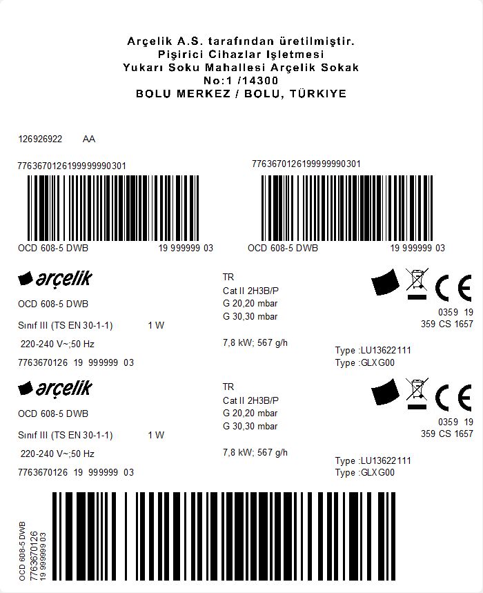 • OCD 608-5 DWB Ankastre Ocak