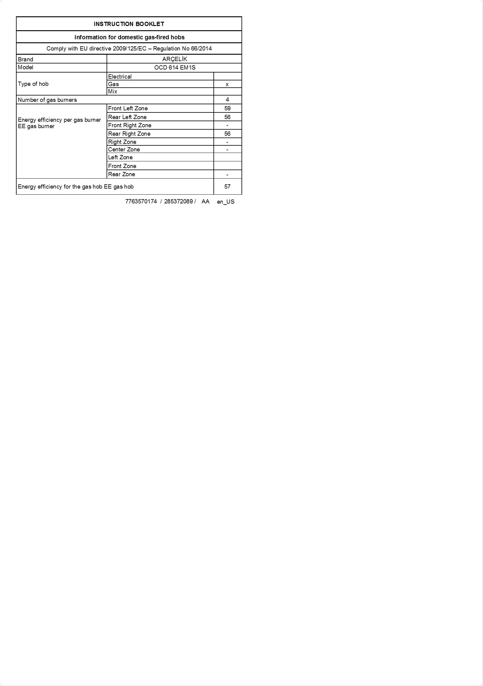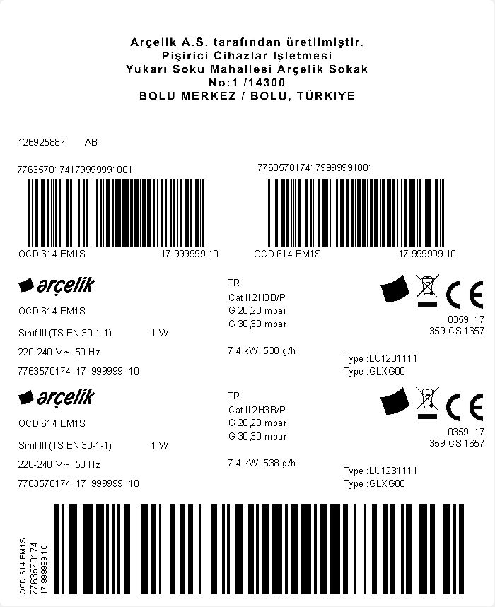 • OCD 614 EM1S Ankastre Ocak