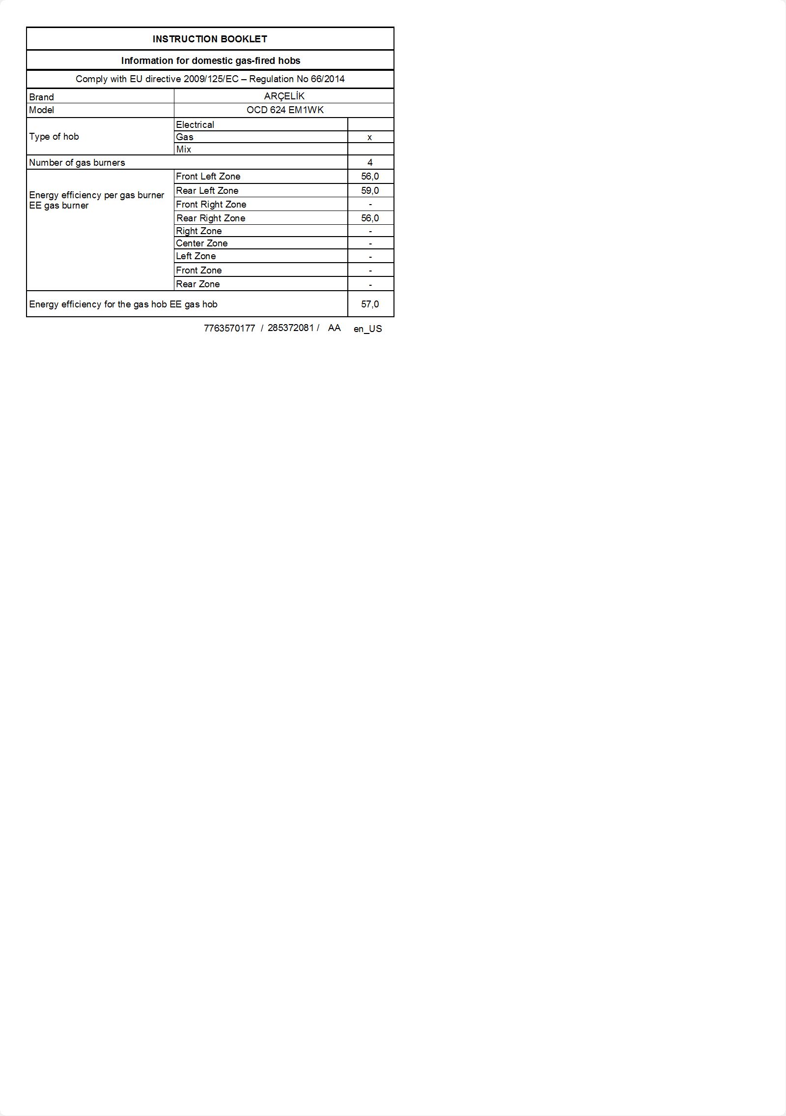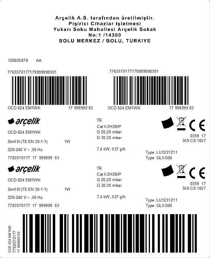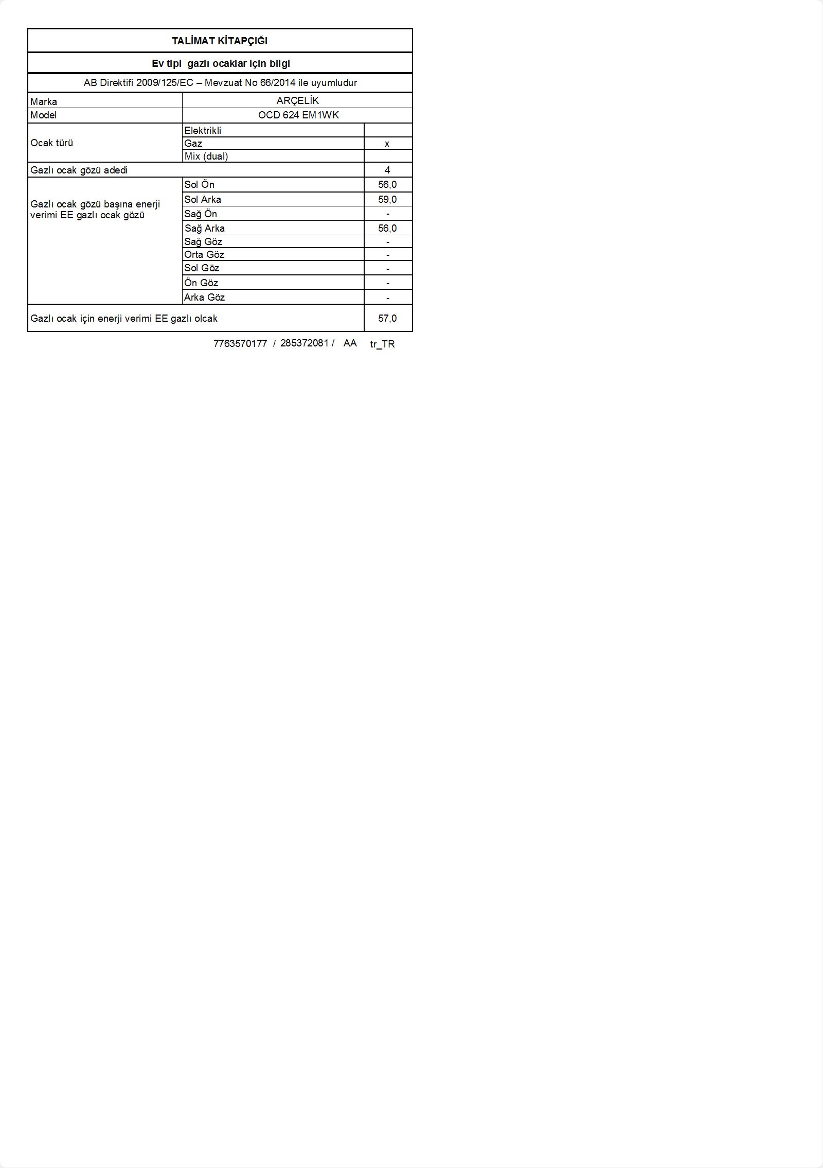 • OCD 624 EM1WK Ankastre Ocak