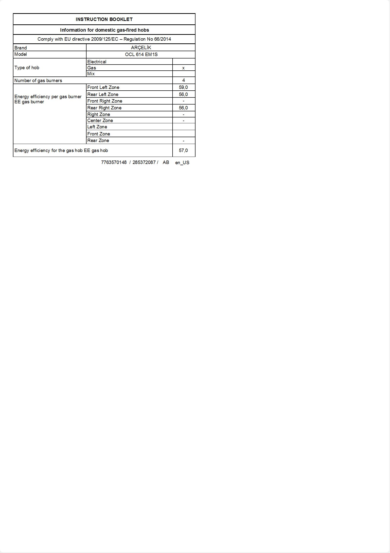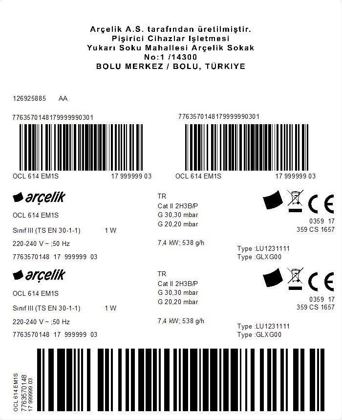 • OCL 614 EM1S Ankastre Ocak