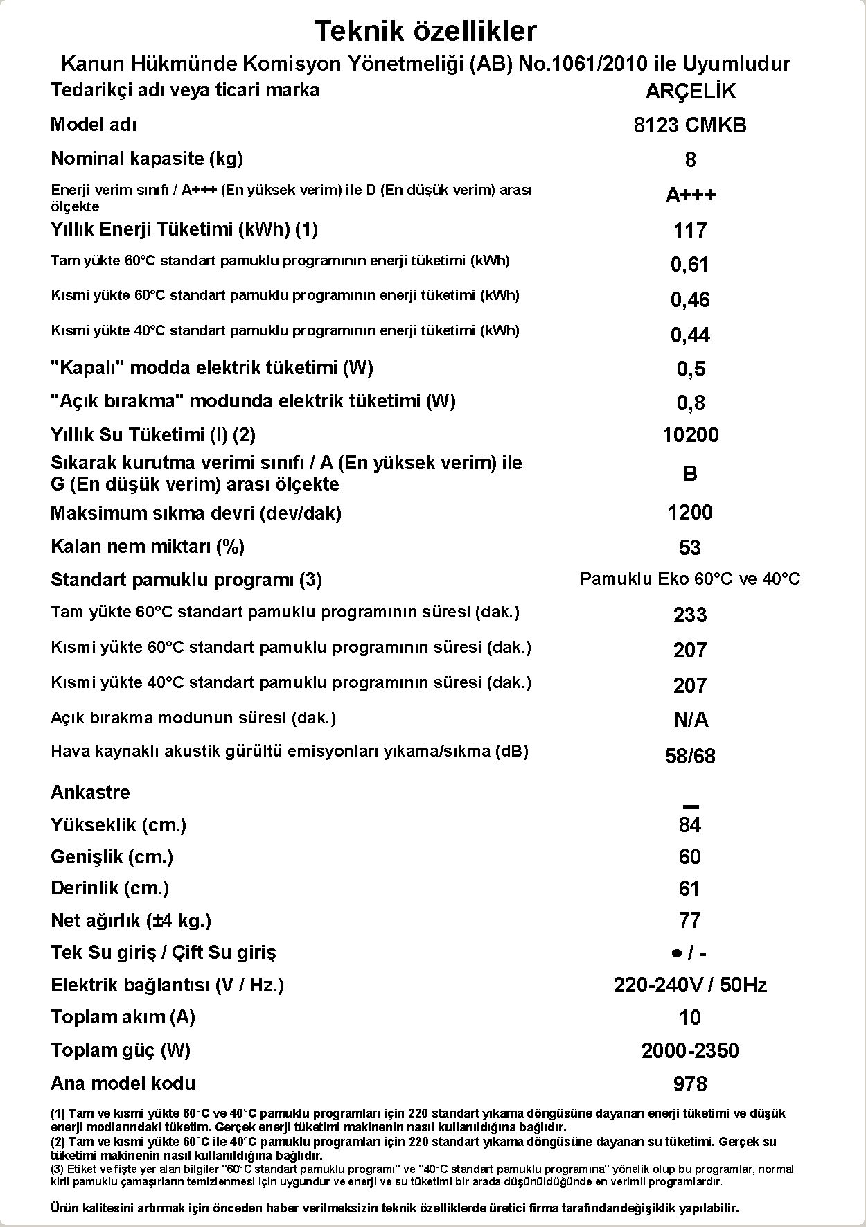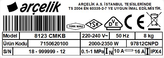 • 8123 CMKB Çamaşır Makinesi