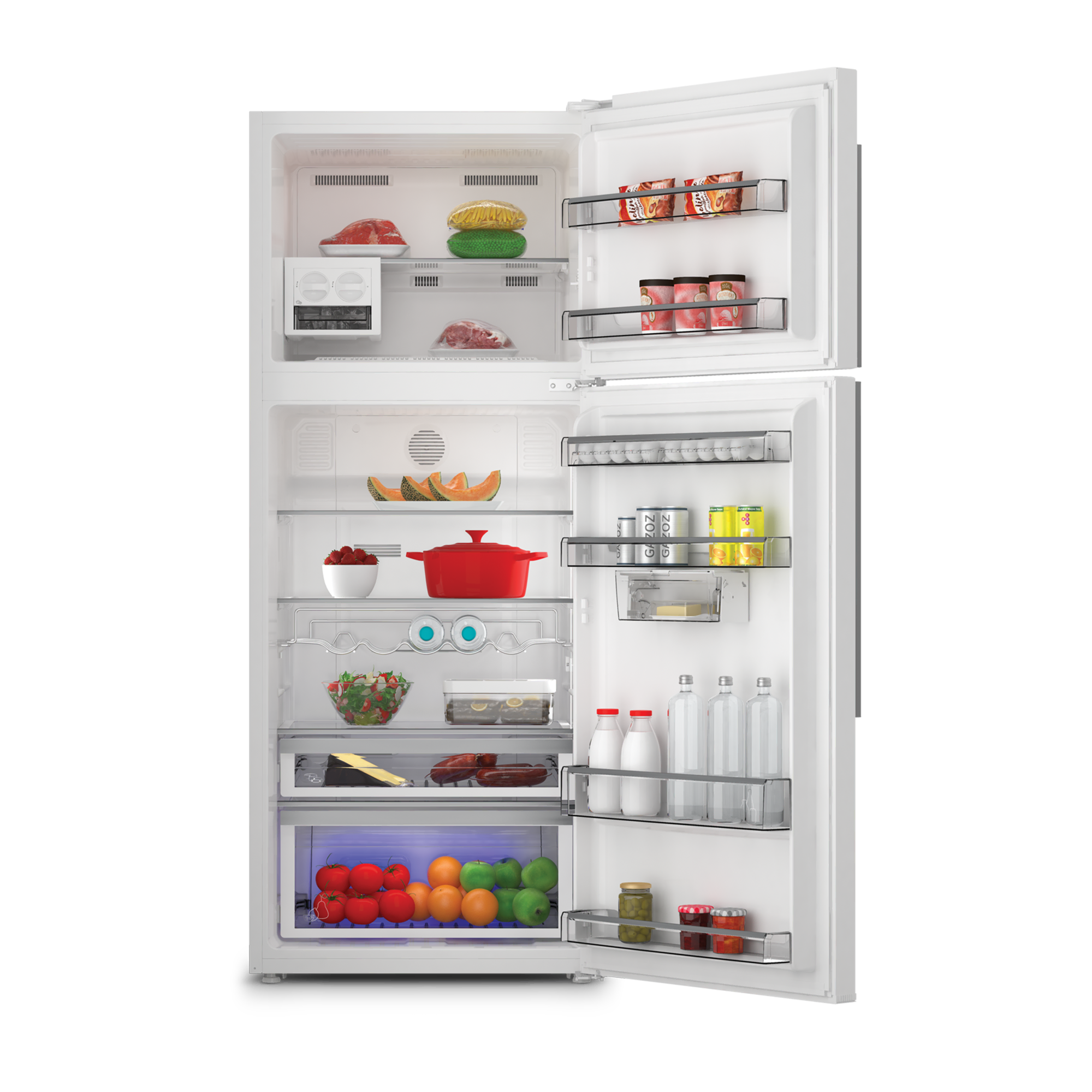 Mavi Işık teknolojisi meyve ve sebzeleri ideal dalga boyuna sahip bir ışıkla aydınlatır ve doğadaymış gibi fotosentez yapmalarını sağlar. Tat ve aromaları korunan gıdalarınız daha uzun süre taze kalır ve C vitaminleri kaybolmaz.