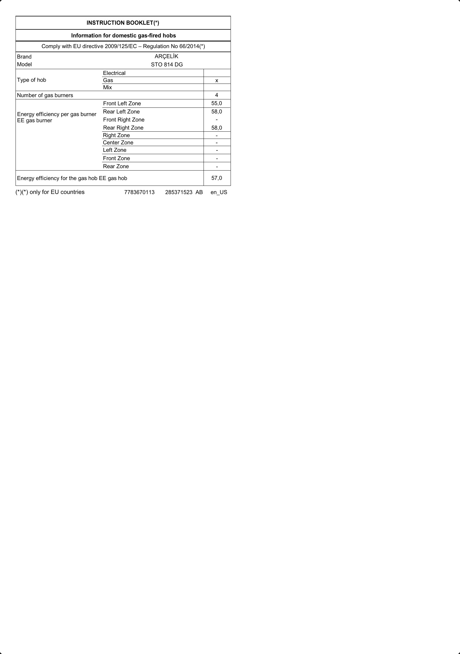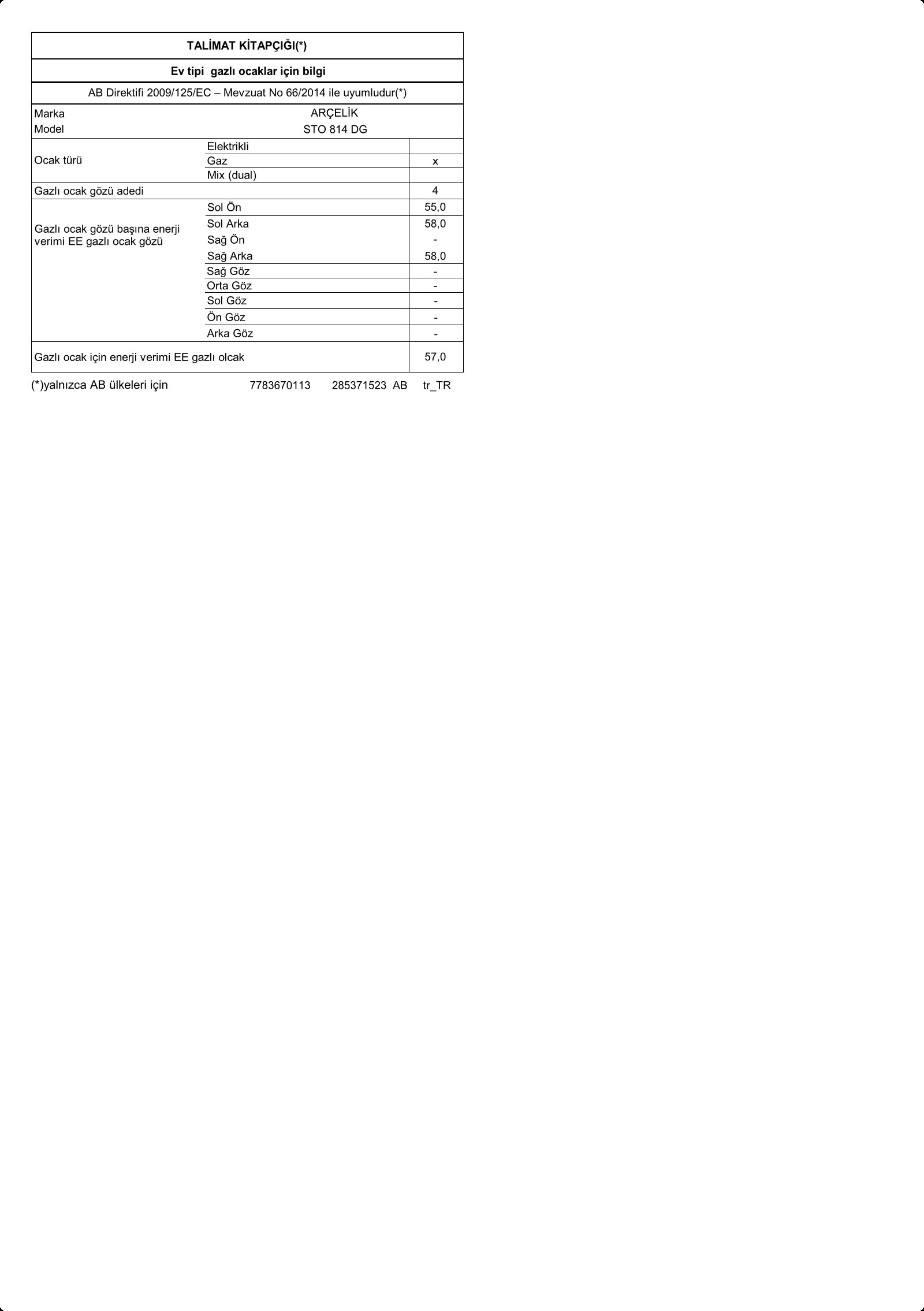 • STO 814 DG Set Üstü Ocak